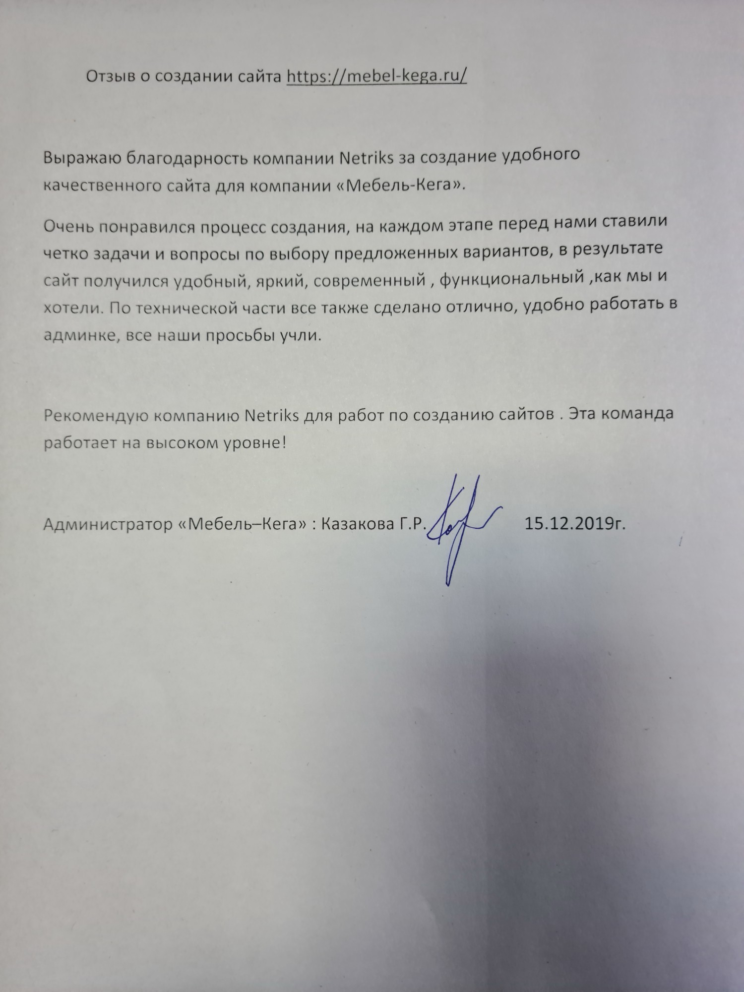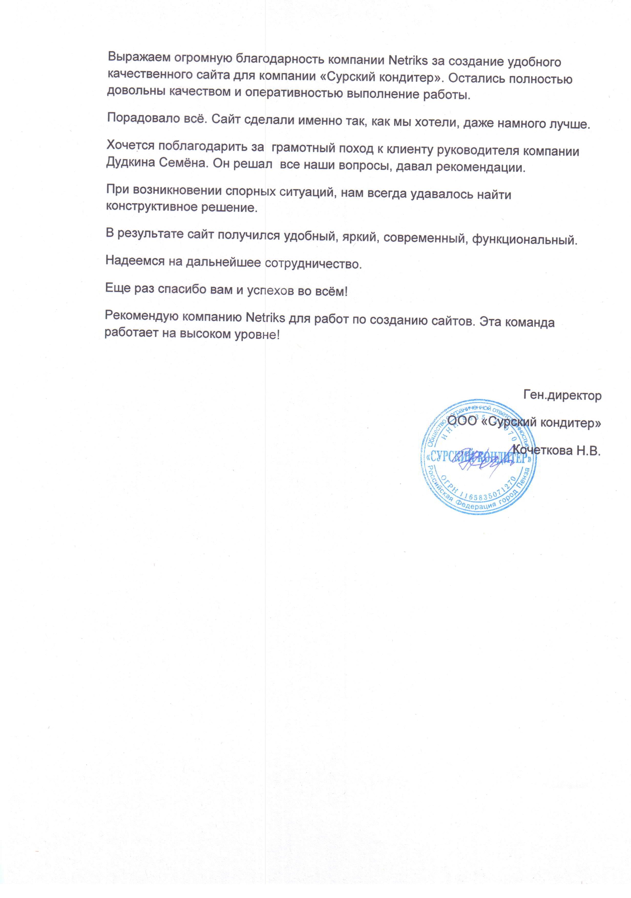 Благодарственные письма